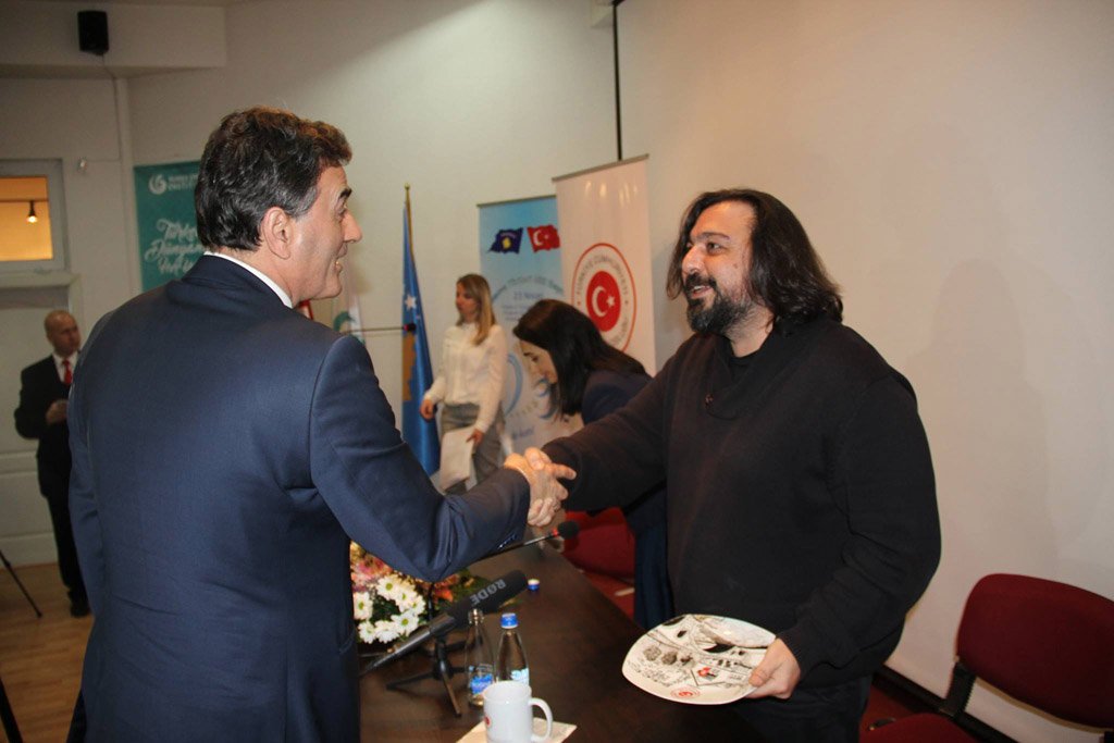 Kutlama etkinliklerimiz ünlü yazar Hakan Günday`ın edebiyat sohbeti ile devam etti.Edebiyat severlerin yoğun ilgisine sahne alan söyleşinin açılış konuşmasında Tertipleme Kurulu Başkanı Mahir Yağcılar bu anlamlı gecenin düzenlenmesinde katkıları geçen Yunus Emre Enstitüsüne ve T.C. Prizren Başkonsolosuna teşekkürlerini iletti.Bakanımız sözlerine,mirasımızı,gelenek ve göreneklerimizi,edebiyat ve kültürümüzü gelecek nesillere taşımanın vermiş olduğu gururu yaşamaktayız ifadelerini kullanarak devam etti.